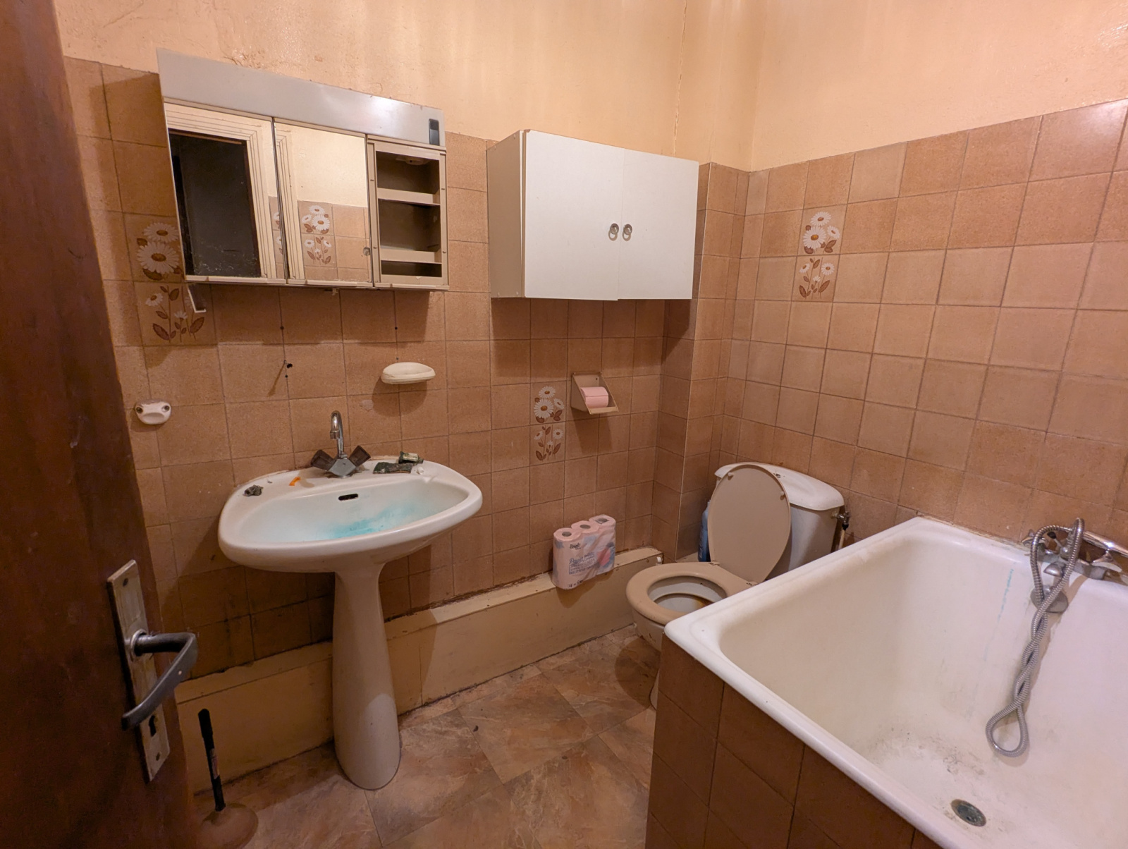 Le RDC comprend un grand séjour avec porte fenêtre donnant sur la rue, une pièce située à l'arrière du séjour avec WC et lavabo et enfin un espace à rénover de 20m² environ.